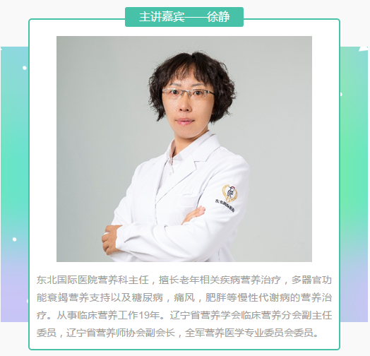主讲嘉宾:东北国际医院营养科主任 徐静