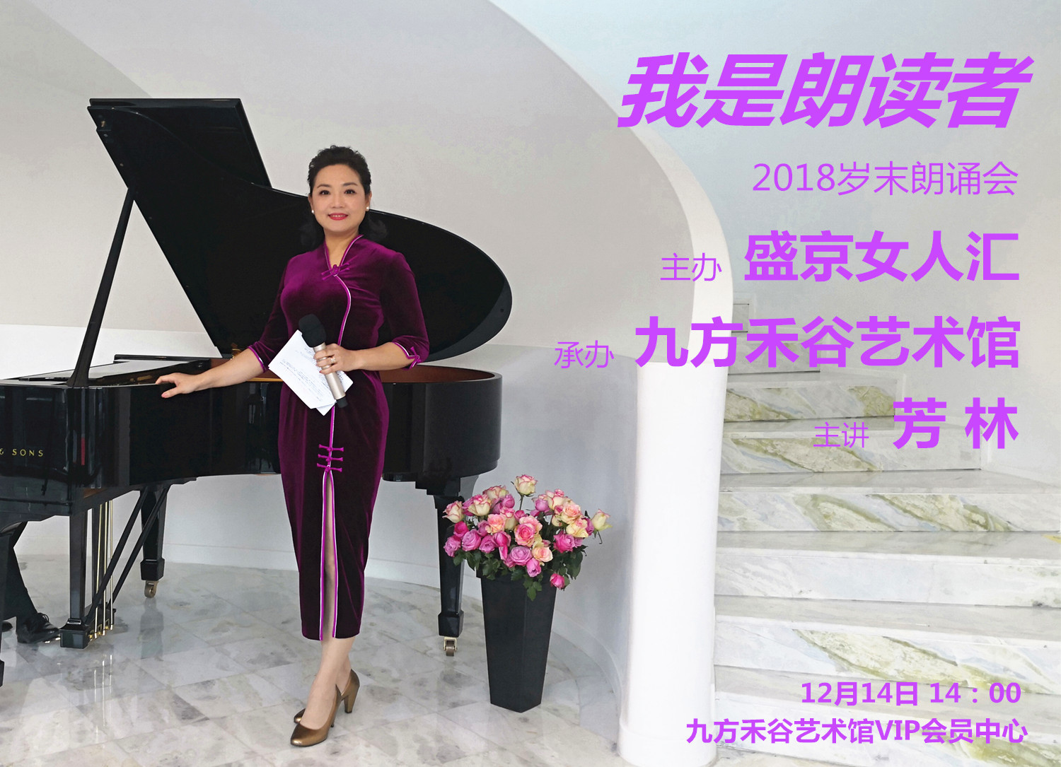 12月14日,由盛京女人汇举办,九方禾谷艺术馆承办的“我爱诵读”线下交流活动将在九方禾谷艺馆举行。